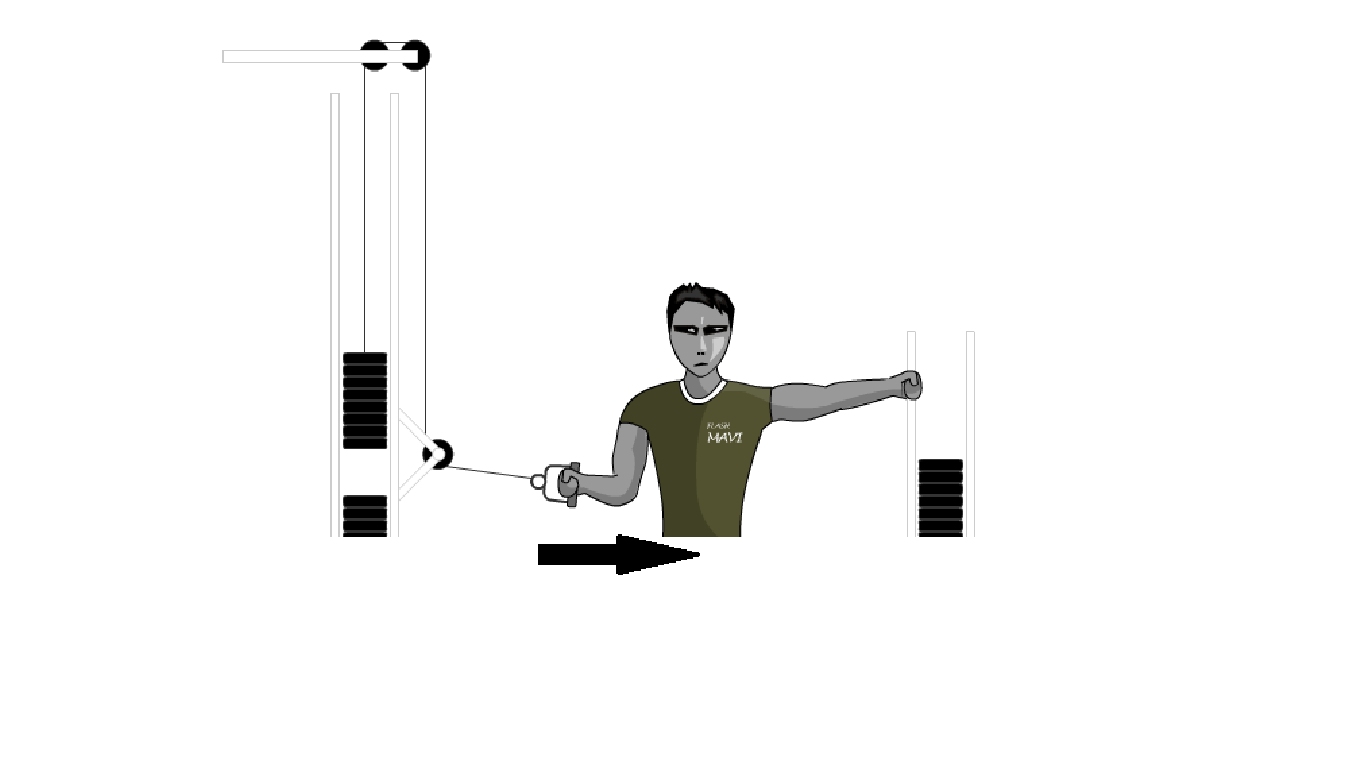 Igual que el ejercicio anterior, pero esta vez la rotación se lleva hacia afuera. Por lo tanto, la polea tendrá que pasar por enfrente del tronco. No olvidamos la respiración y hacer el ejercicio lentamente sintiendo cómo trabajan los rotadores del hombro.