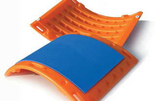 Arco de fibra sintética (polietileno) o madera natural, con dimensiones (70x50x17 cm.), equilibrado y con un peso reducido (de 3,2 a 4,7 Kg). Es posible utilizarlo por ambos lados (con un granulado en la parte cóncava y una esterilla en l aparte convexa)
